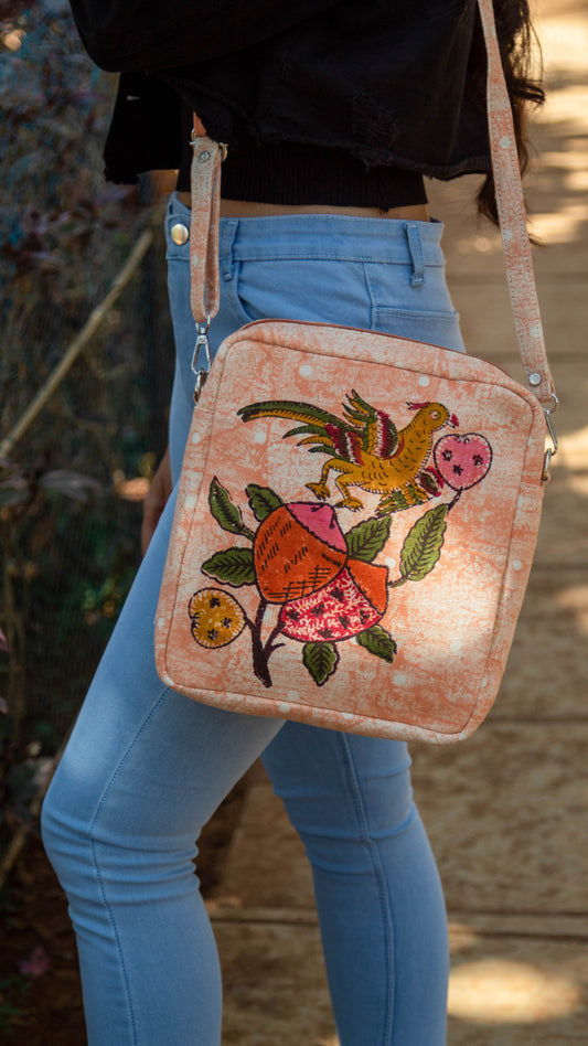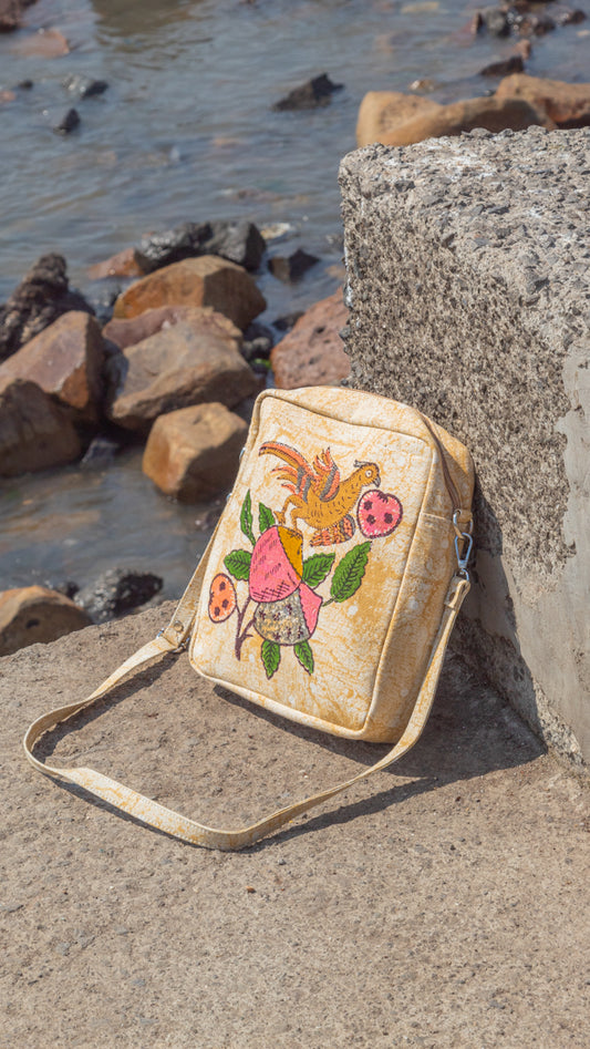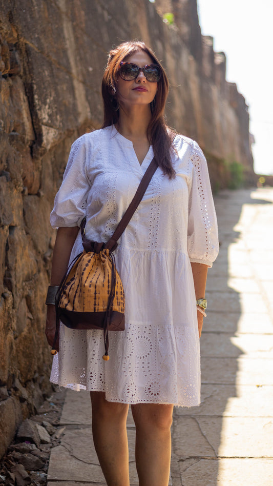 Cotton Drawstring Sling Bag • Coffee and Caramel