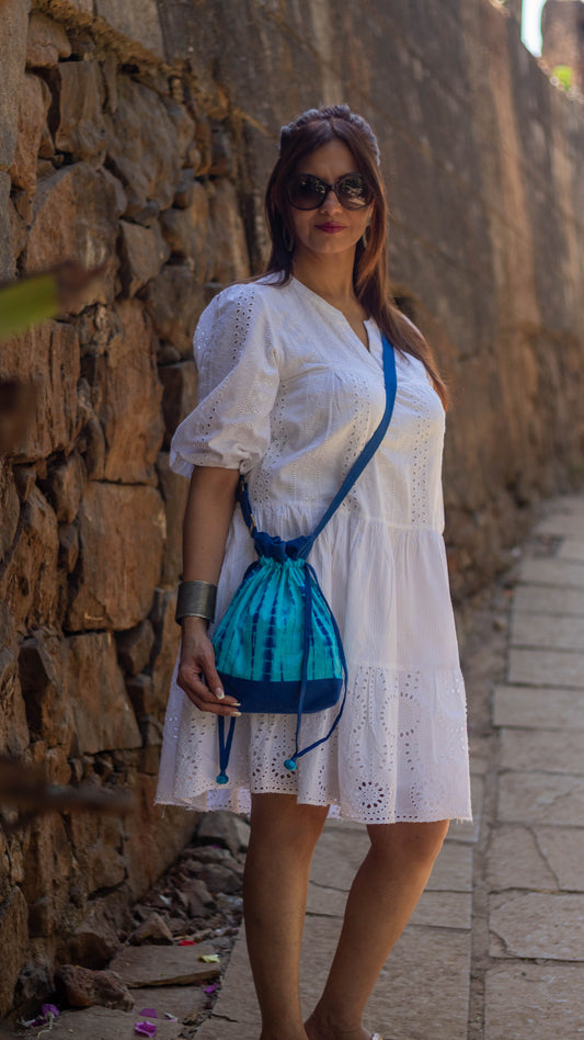 Cotton Drawstring Sling Bag • Vibrant Blue