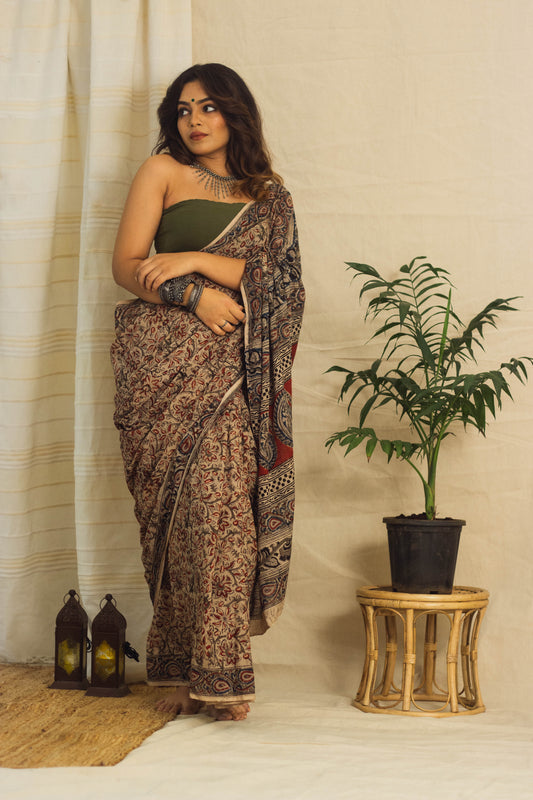 Mul Cotton Block Printed Saree Kalamkari Vrindavan