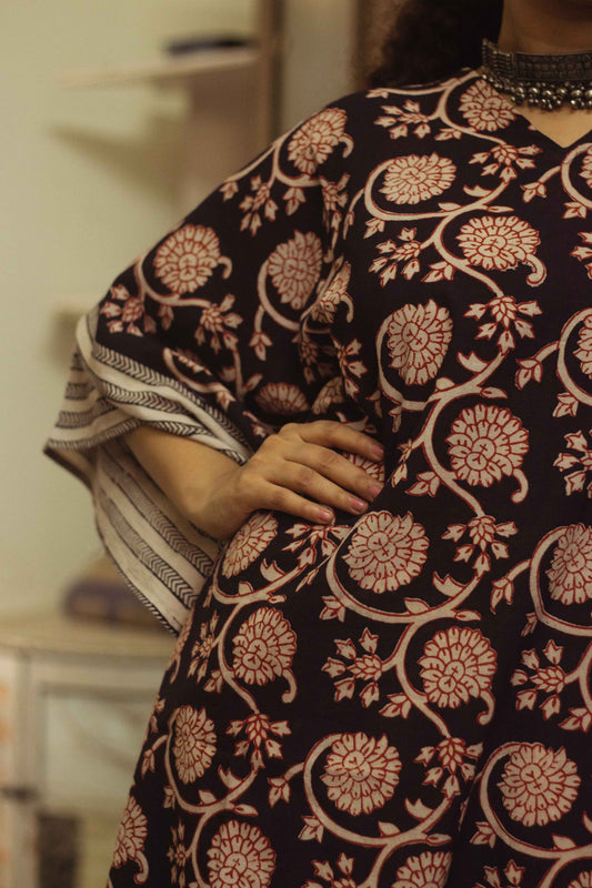 Cotton Bagh Block-Printed Kaftan Dress · Phulwaari Black