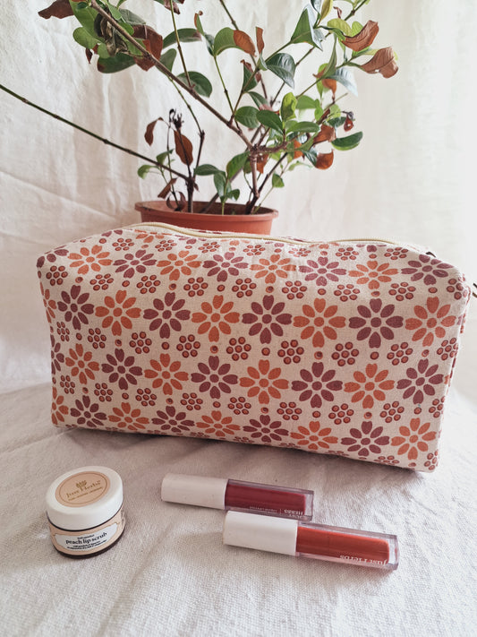 Cotton Pouch • Teal and Pink • Lotus Motif