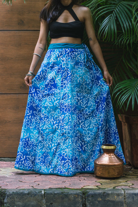 Cotton Mul Batik Kaftan Tunic Dress · Blue Leheriya