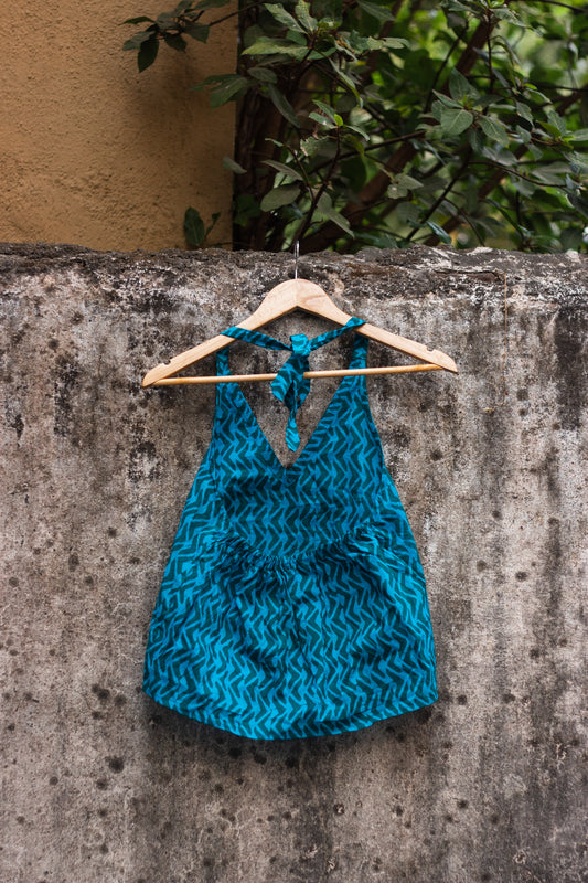 Cotton Crop Top In Batik Print Boomerang Blue