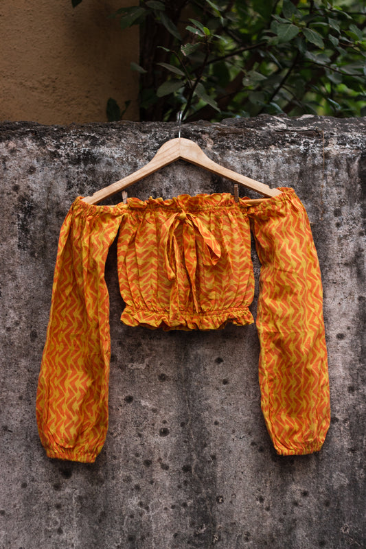 Cotton Crop Top In Batik Print Boomerang • Yellow