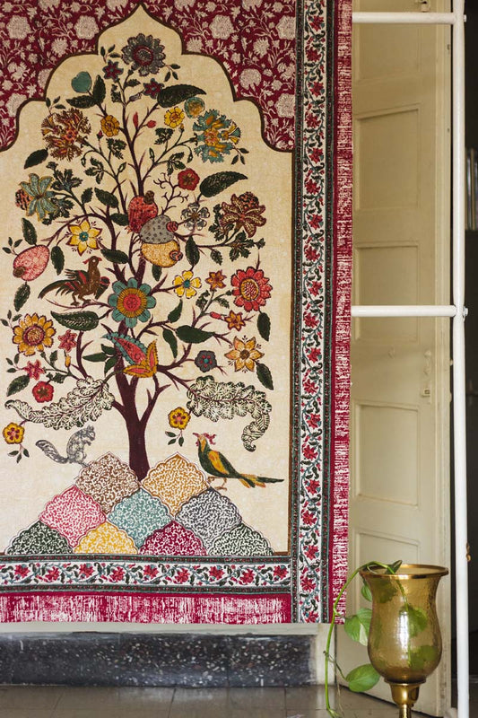 Cotton Shopping Tote Bag · Mughal Trellis Red and Green