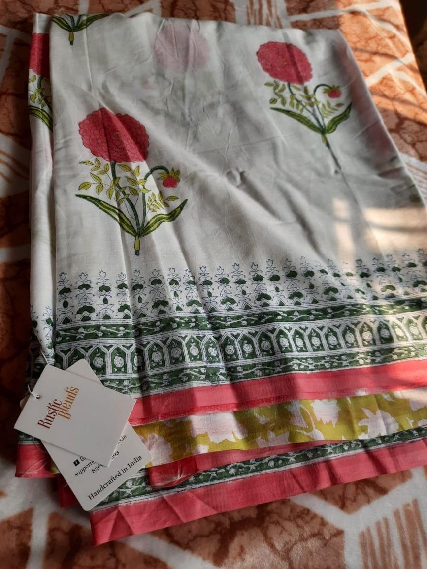 Cotton Mul Bagru Saree Spring Blossom